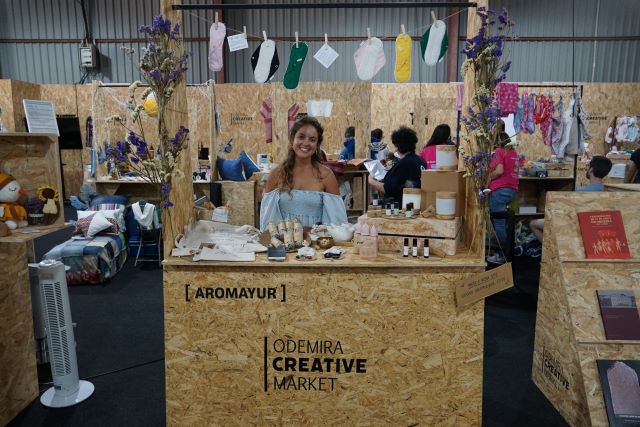 Andreia Gamito, no Espaço Criative Market (Mercado Criativo), no stand Aromayur, iniciou, há dois anos o seu projecto de pensos higiénicos reutilizáveis. Para a comerciante ainda se vive num mundo em que o produto “é um bocadinho tabu da sociedade”, mas que ainda atrai muitos curiosos.
