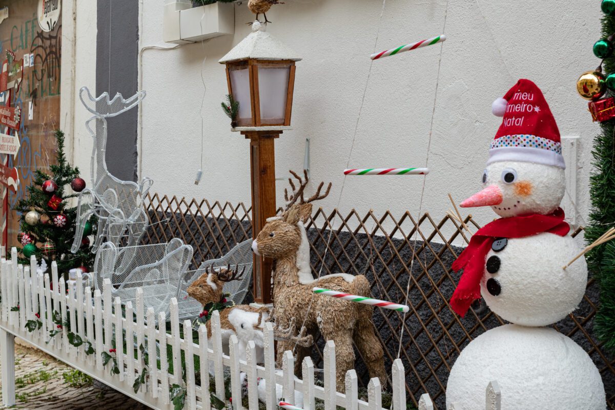 Quem por cá passa, de residentes a turistas, não fica indiferente aos elementos e cores que dão outra vida a este arruamento da baixa setubalense. Dois pequenos canteiros com renas, bonecos de neve, um Pai Natal a trepar uma escada e presentes nas paredes são alguns dos enfeites que se podem observar.