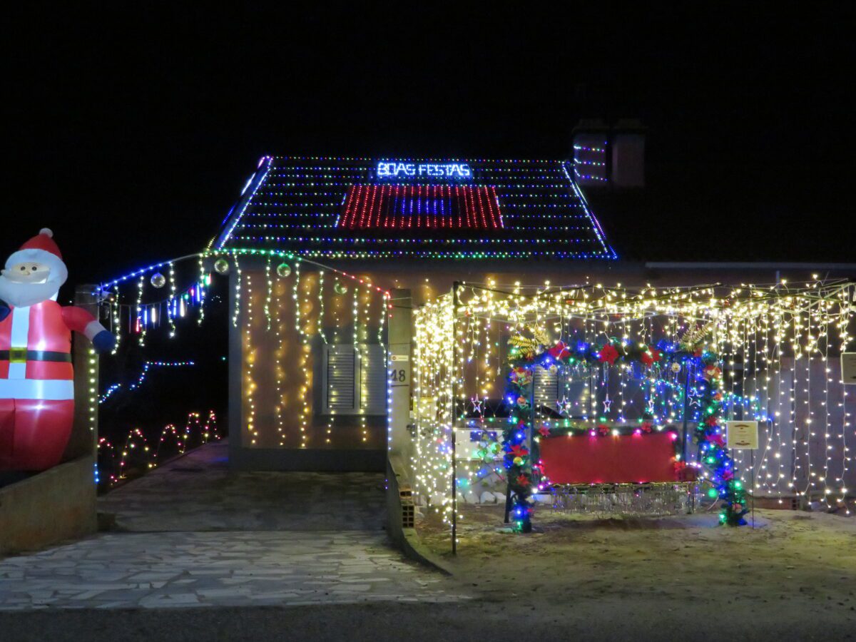 “Tenho duas árvores de Natal gigantes, uma com cinco metros e outra com oito, também um baloiço natalício que foi todo decorado. Este ano a novidade é um cubo onde as pessoas entram e têm a sensação de ficar rodeadas por cerca de duas mil luzes, dá assim um ambiente mágico, onde podem tirar as suas fotos em família com a casa por trás. E tenho este ano também uma nova tecnologia que é designada RGB – que significa Red, Green e Blue [em português: vermelho, verde e azul] – que é uma combinação de várias luzes que garantem efeitos especiais”, detalha.