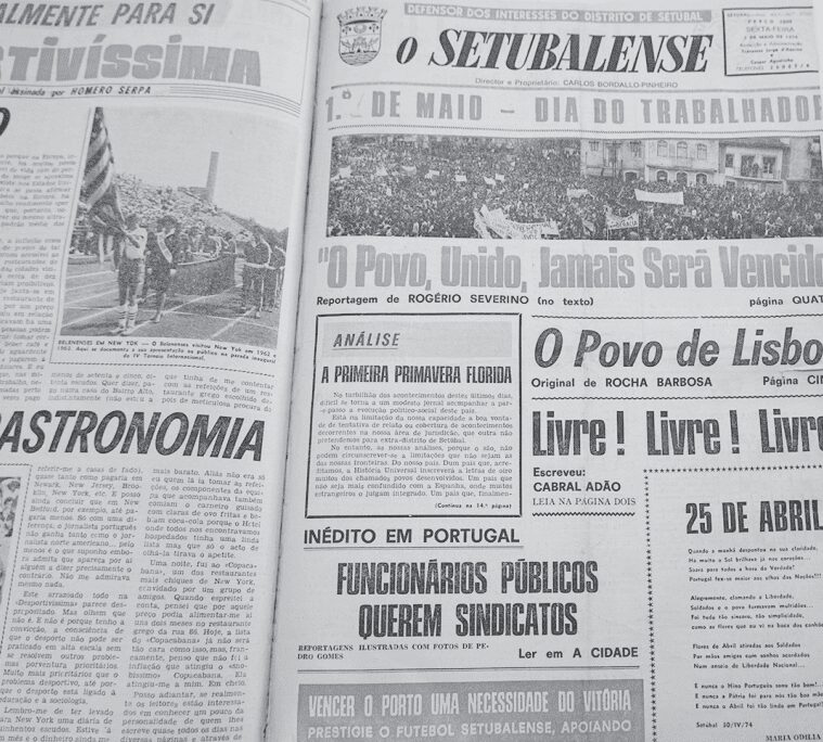 “Está na limitação da nossa capacidade a boa vontade de tentativa de relato ou cobertura de acontecimentos decorrentes na nossa área de jurisdição, que outra não pretendemos para extra-distrito de Setúbal”. Afirma-se a evidência territorial, os escassos recursos humanos e a tomada de posição sobre as opções de carácter noticioso. Mais algumas notas sobre a primeira página para fixar o título “Livre! Livre! Livre!” de Cabral Adão. O poema 25 de Abril, de Maria Odília Batel – “Alegremente clamando a liberdade / Soldados e o povo formaram multidões…/ Foi tudo tão sincero, tão simplicidade/ Como as flores que eu vi na boca dos canhões”. Marca da mudança social, surge ainda na notícia que não só informa como interpreta – “Inédito em Portugal – Funcionários públicos querem sindicatos”.